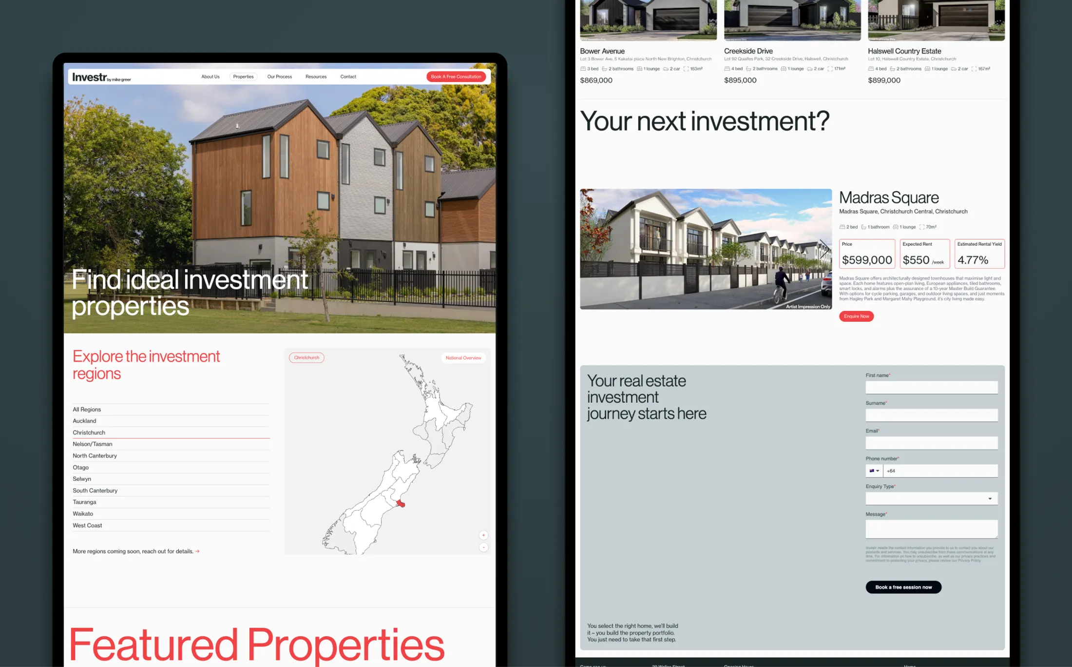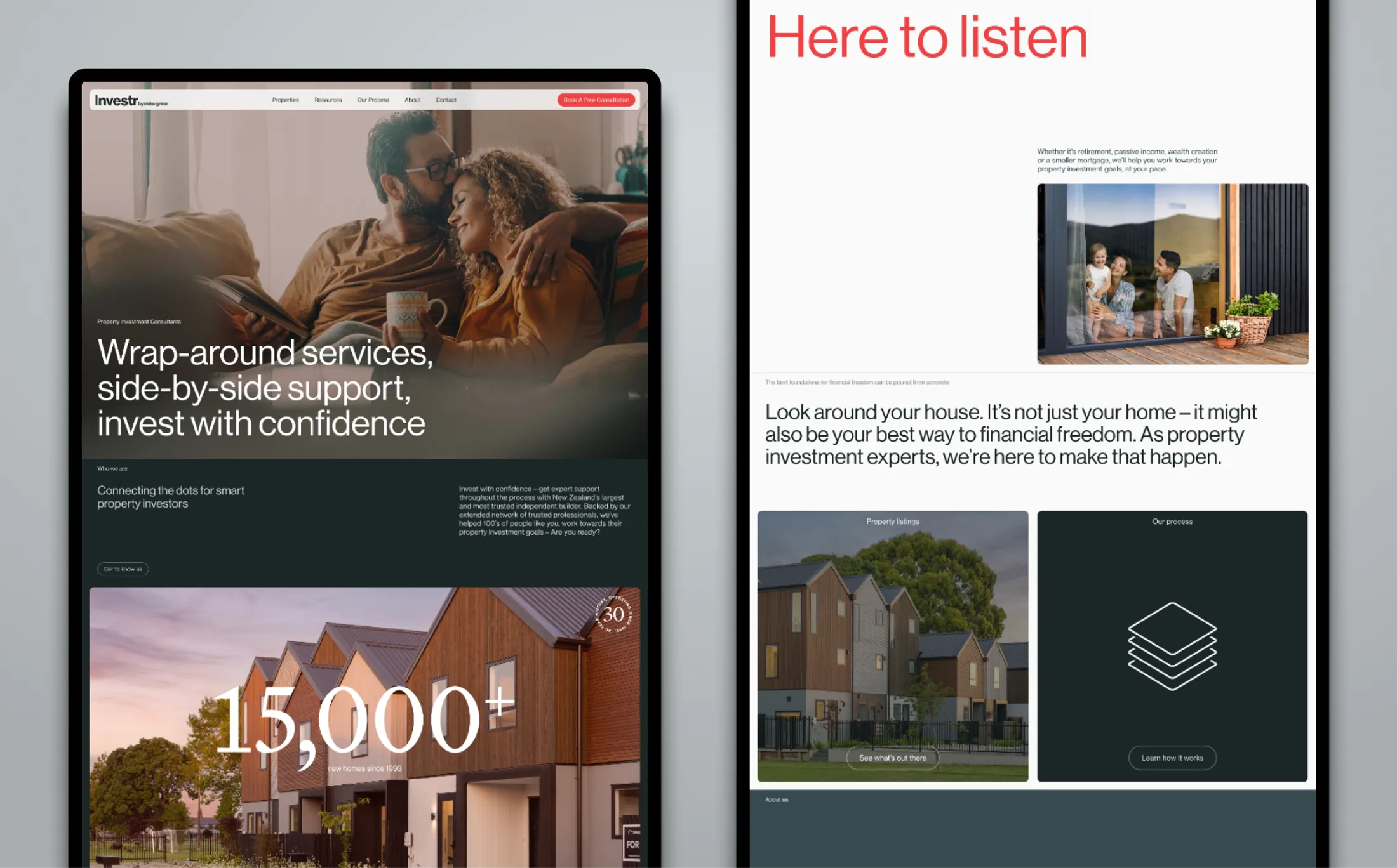 Whether someone is purchasing their first investment property or adding to an existing portfolio, Investr offers wrap-around support – from initial consultation through to property selection and ongoing management. The challenge was to create a digital presence that could communicate this proposition clearly, build trust quickly, and convert visitors into consultation bookings.
